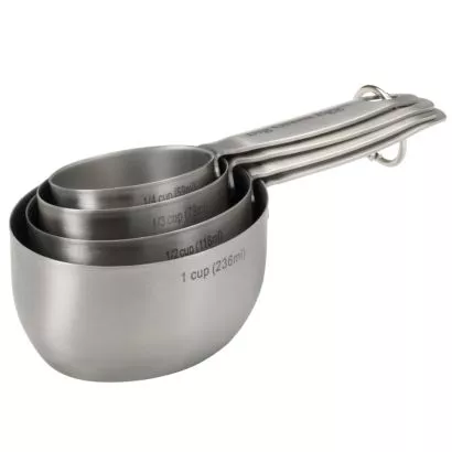 Das Big Green Egg Messbecher Set besteht aus vier verschiedenen Messbechern und ist das ideale Zubehörutensil bei der Zubereitung deiner Grillspezialitäten. In den aus Edelstahl gefertigten Messbechern lassen sich deine Zutaten exakt abmessen, so hat jedes Gericht eine absolute Geling Garantie. Praktisch können die Cups an dem im Lieferumfang enthaltenen Ring gemeinsam aufgehangen werden und dann problemlos an deinem EGG oder auch in der Küchenschublade verstaut werden.
