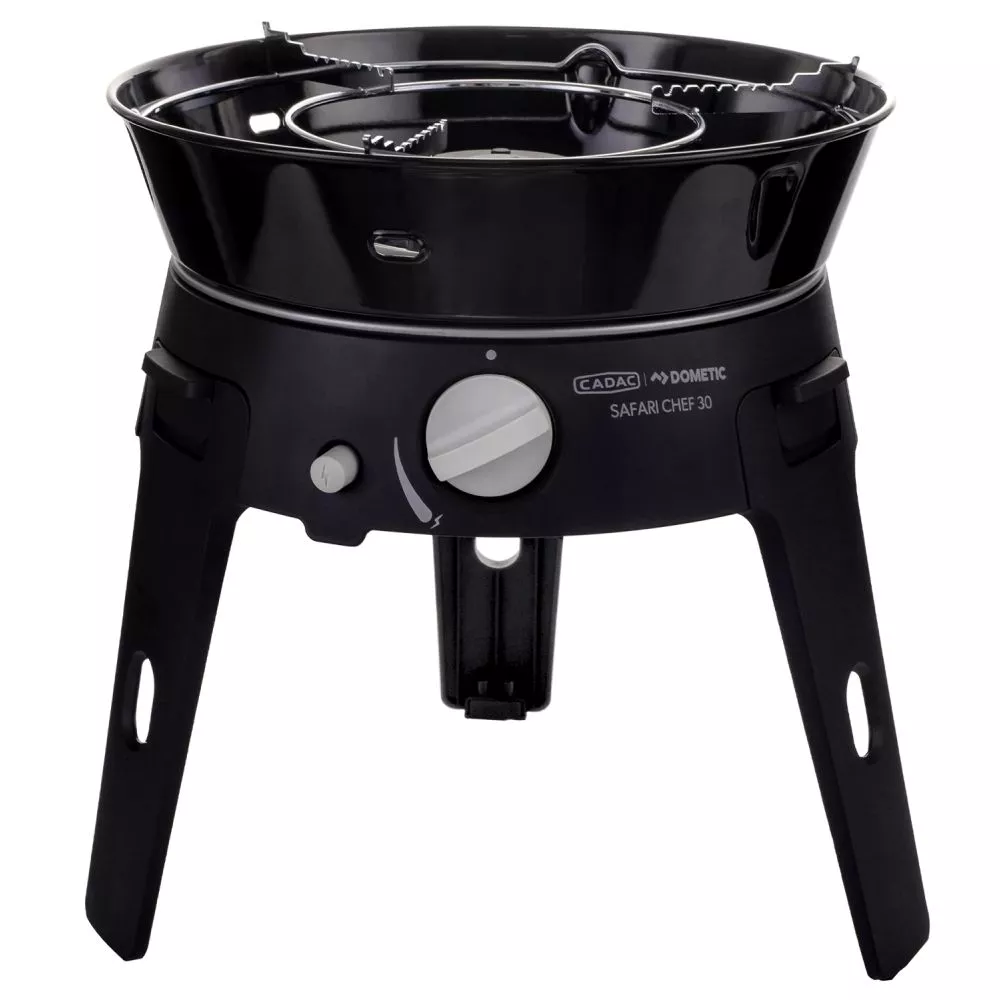 Der Safari Chef 30 Combo von Cadac Dometic ist ein kompakter, vielseitiger Outdoor-Gasgrill, der sich perfekt für Reisen und Urlaub eignet. Mit einem Gewicht von nur 4 kg und drei verschiedenen Kochflächen, Pfannenträger, Grillrost und Deckel, der auch als Pfanne verwendet werden kann, bietet dieser Campinggrill unendliche Möglichkeiten für das Kochen im Freien.