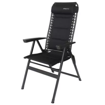 Ein stabiles Aluminium-D-Gestell und gepolstertes, atmungsaktives 3-D-Airmesh-Material sorgen für einen komfortablen Sitz auf dem Campingstuhl Veroli von Eurotrail. Er ist ausgestattet mit einer 7-fach verstellbaren Rückenlehne, deren Bespannung mit Gummibändern eine bequeme und rückenfreundliche Sitzhaltung bietet. Ein abnehmbares und höhenverstellbares Nackenkissen unterstützt die gewünschte Position. Der leichte Eurotrail Veroli Camping-Stuhl lässt sich schnell und einfach aufbauen und zu einem kompakten Paket zusammenlegen.