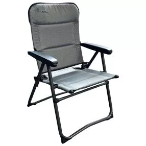 Der Nanna Klappstuhl ist bis 120 kg belastbar und mit einer 1,5 cm dicken Schaumstoff gepolsterten Sitzfläche ausgestattet. Zusätzlich erleichtert der strapazierfähige Polyesterbezug mit PVC-Beschichtung die Reinigung. Das pulverbeschichtete Aluminiumgestell dem Stuhl Stabilität und macht ihn gleichzeitig einfach zu handhaben und zusammenzuklappen. Dank dem modernen und schlichten Grauton passt sich dieser Stuhl besonders gut in die meisten Campingumgebungen ein.