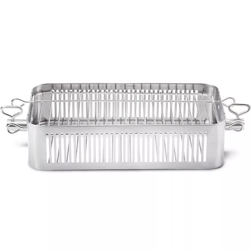 Dieser Napoleon Drehspiess-Korb aus Edelstahl verfügt über ein 3-fach in der Höhe verstellbares Gitter zum Verschliessen und wird mit zwei Feststellschrauben am Grillspiess montiert. Damit grillst du Fisch, Gemüse, Meeresfrüchte am Drehspiess.