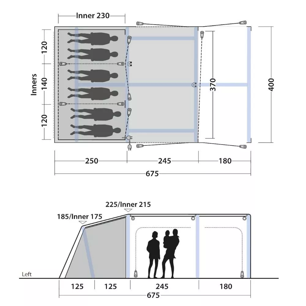 Steile Seitenwände optimieren den nutzbaren Raum im Zeltinneren. Die Innenhöhe im Wohnbereich bietet mit 215 cm viel Kopffreiheit.