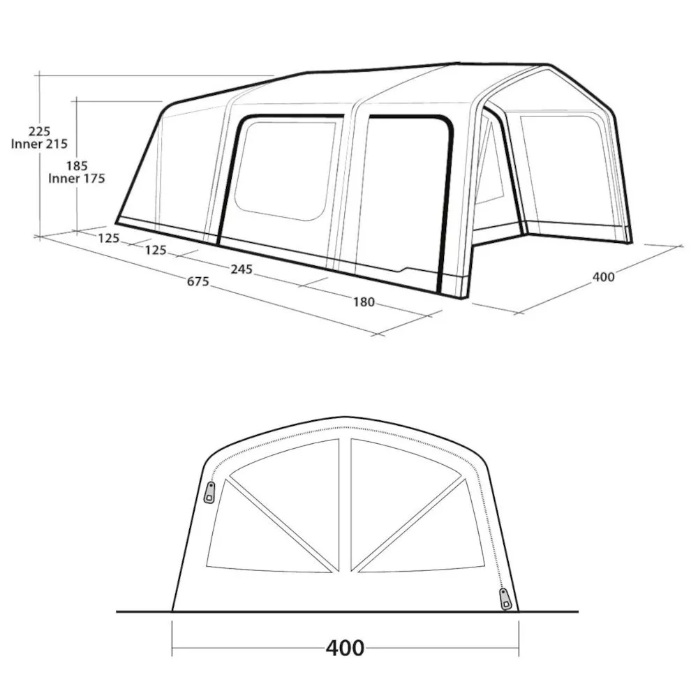 400 x 245 x 215 cm (BxTxH)