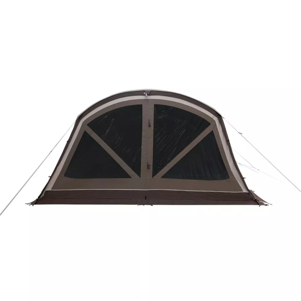 Mit allen Outwell-Innovationen ausgestattet, bietet das Dual-Front-System (doppelte Frontkonstruktion) bereits im Eingangsbereich viel Flexibilität: die abnehmbare Front ermöglicht es, den Bereich hinter der Vordertüre als wettergeschützten Platz mit Vordach geniessen zu können. Bei geschlossener Türe steht eine weitere Zone mit Staumöglichkeiten zur Verfügung.