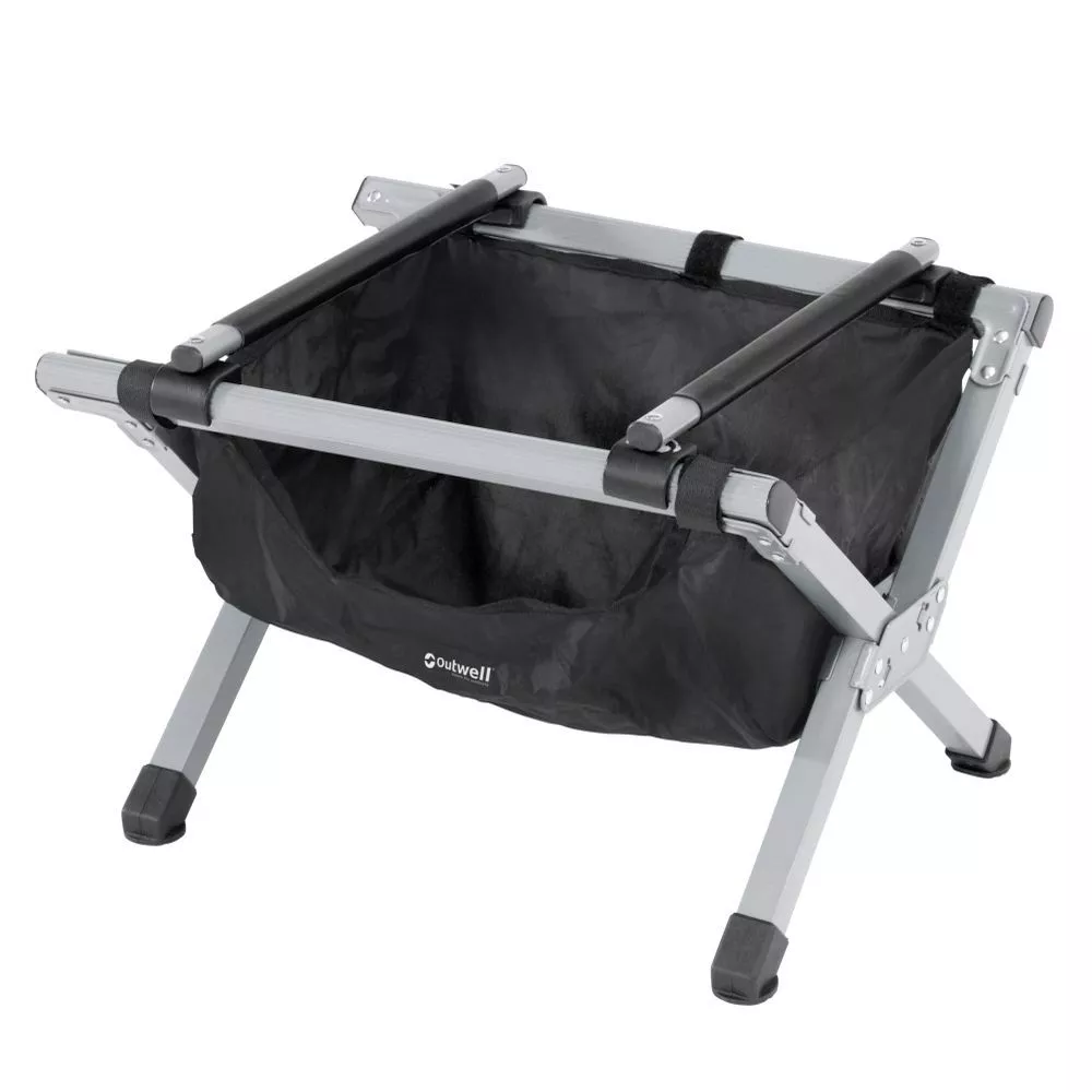 Auf der praktischen, rutschfesten Auflage Outwell Charlotte Town mit Aufbewahrungstasche, lassen sich z. B. Kühlboxen in bequemer Arbeitshöhe abstellen. Auch anderes Zubehör muss dank des belastbaren Camping-Organizers nicht länger auf feuchtem Boden stehen. Die Aufbewahrungstasche ist abnehmbar.