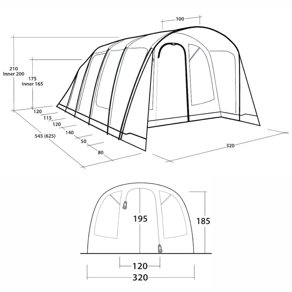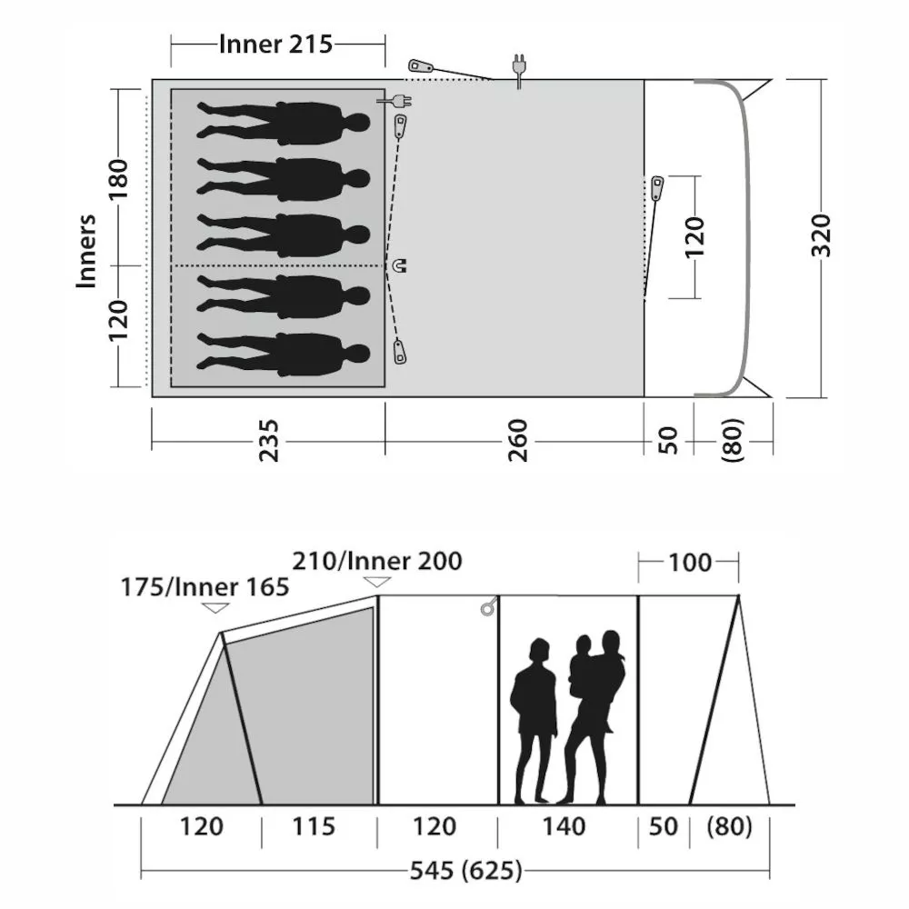 Die vertikale Vorderwand bietet dank Überdachung einen regengeschützten Eingang mit aufrollbarem Seitenschutz. Mit einer angenehmen Innenraumhöhe von 200 cm liefert die clevere Tunnelkonstruktion viel Platz im Zelt. Der über 8 Quadratmeter grosse Wohnraum eröffnet zahlreiche Wohn- und Staumöglichkeiten.