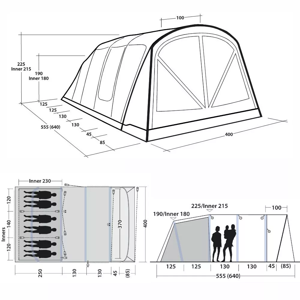 Der als Zubehör erhältliche, passgenau zugeschnittene Teppich sorgt für noch mehr Komfort. Und die passgenaue Unterlage schützt den Zeltboden vor Abrieb und Schäden von unten und isoliert gleichzeitig gegen Bodenkälte. Erweitere das Florida 6 Air mit dem optional erhältlichen Outwell Canopy Tarp L und erhalte so noch mehr wettergeschützten Platz. Der ebenfalls zusätzlich erhältliche Outwell Lounge XL Tent Connector ermöglicht es, dein Zelt mit einem Outwell-Pavillon zu verbinden.