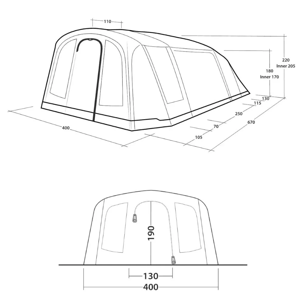 Das aufblasbare Familienzelt Outwell Sacramento 6 Air bietet ein geräumig komfortables Campingerlebnis für bis zu sechs Personen.