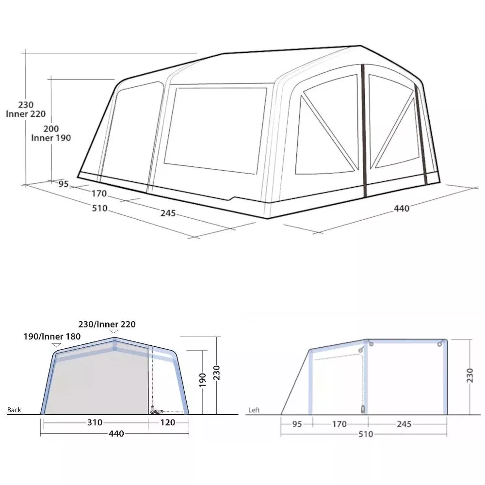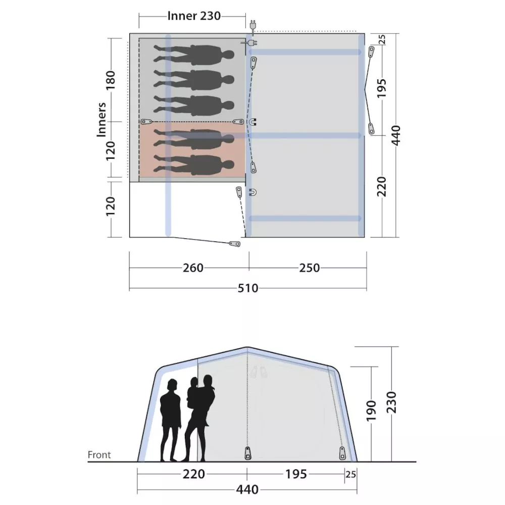 Dank des OneAir-Systems (Gestellkonstruktion aus Luftschläuchen wird über ein einziges Ventil aufgeblasen und entleert) lässt sich das Tunnelzelt schnell und einfach aufbauen. Bis zu 5 Personen finden in dem geräumigen Campingzelt Platz zum gemeinsamen Entspannen, Kochen und Essen. Perfekt geeignet für längere Urlaube mit Freunden oder der Familie.