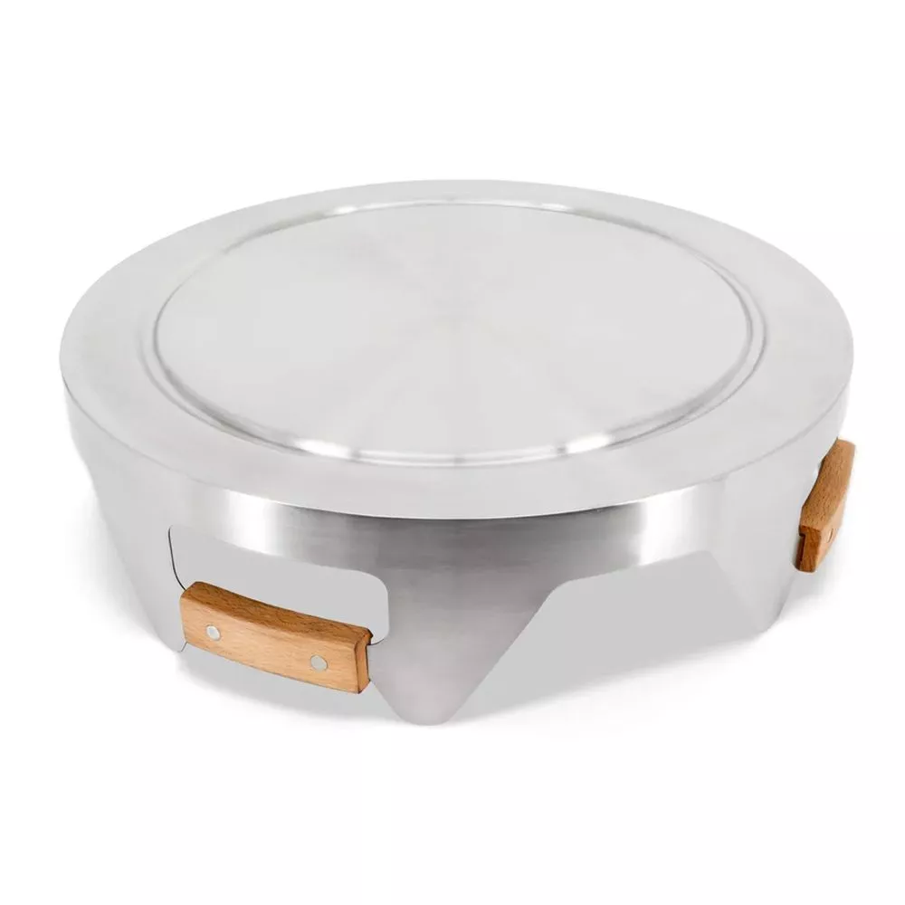Der Pyron-Deckel aus robustem Edelstahl ist die ideale Ergänzung für deine Petromax Feuertonne. Die massiven Buchenholzgriffe liegen angenehm in der Hand, während das hochwertige Design perfekt auf den Pyron abgestimmt ist. Dank der cleveren Rillen auf Unterseite zentriert sich der Deckel von selbst und sitzt stabil und passgenau. Doch der Deckel kann mehr als nur abdecken: Er dient auch als praktische Ablagefläche für Grillutensilien oder Zutaten und erleichtert dir so das Handling beim Grillen und Kochen. Aufgesetzt verwandelt er die Feuertonne Pyron zudem in einem praktischen Stehtisch. Nach dem Ausglühen des Feuers schützt der Deckel zuverlässig vor herumfliegender Asche und verhindert, dass Regenwasser in die Feuertonne eindringt.