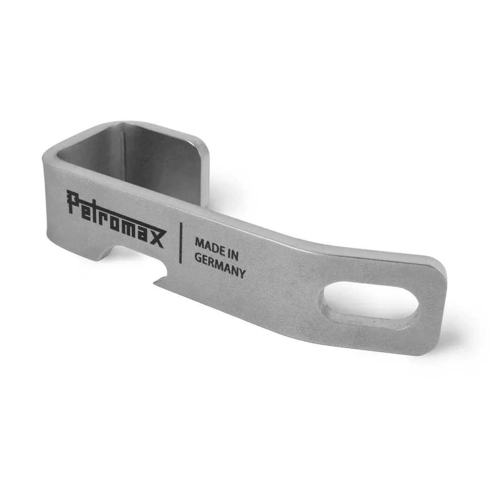 Den Sicherungsbügel aus robustem und 4 mm starkem Edelstahl steckst du einfach von oben in den Griff deiner Petromax Kühlbox. Sobald du die Box verschliesst, arretierst du die Schlosshalterung automatisch. Damit kann sie von aussen nicht mehr entfernt werden und macht es dir möglich, deine Kühlbox von Petromax mit einer Kette und einem Schloss zusätzlich zu sichern. So kannst du ruhig schlafen, wenn sich dein Proviant ausserhalb deines Zeltes befindet oder du für eine Erkundungstour aufbrichst. Benötigst du die Schlosshalterung einmal nicht zum Sichern, dann wird sie dir – dank des integrierten Flaschenöffners – als zuverlässiges Mittel gegen den Abenteuerdurst behilflich sein.