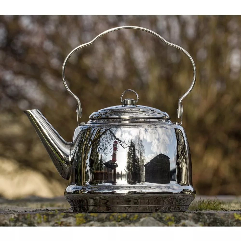 Der Petromax Teekessel ist deine robuste Teekanne für die Draussen-Küche. Tee kochen geht mit dem temperaturbeständigen Edelstahl-Kessel jetzt direkt in der Glut oder hängend über dem offenen Feuer. Dank des austarierten Henkels mit dreifacher Wölbung ist der Teekessel auch im befüllten Zustand handlich und das Positionieren über dem offenen Feuer funktioniert fast schon wie von allein. Der mehrschichtig aufgebaute Boden fördert die Wärmeverteilung optimal und das Wasser wird in kürzester Zeit zum Kochen gebracht. Die langgeführte Tülle sorgt dafür, dass beim Eingiessen kein Tropfen an deiner Tasse vorbeigeht.