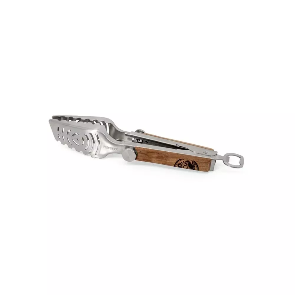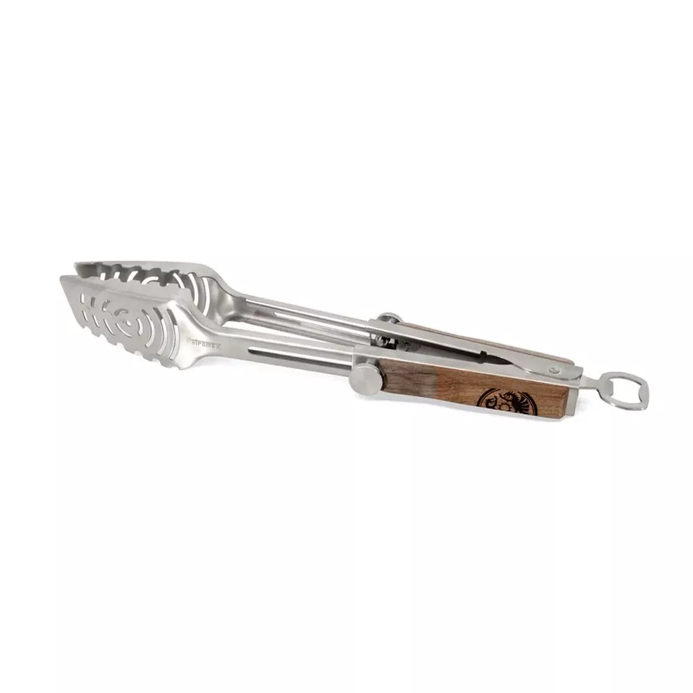 Doch diese Zange kann mehr: Mit ihrem integrierten Flaschenöffner und der Funktion als Grillrostheber wird sie schnell zum unverzichtbaren Multitool am Grill. Ob Wenden, Greifen, Reinigen oder Kohle nachlegen – sie macht alles mit.