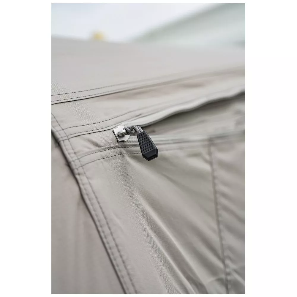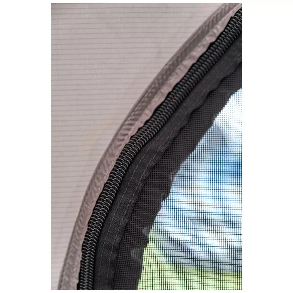 Frische Luft garantiert: Beide Seitentüren sind mit Fliegennetzen versehen, die eine kühle Brise zulassen und die Luft zirkulieren lassen. Die Front lässt sich ebenfalls hoch klappen. Dadurch verwandelt sich das Spirit in ein luftiges Vordach, unter dem du deinen Morgenkaffee im warmen Sonnenlicht geniessen kannst.