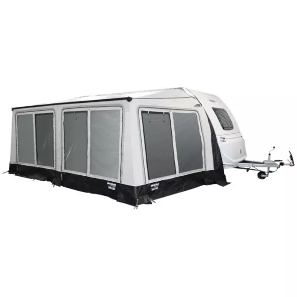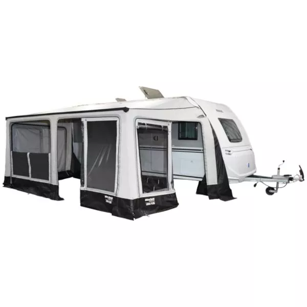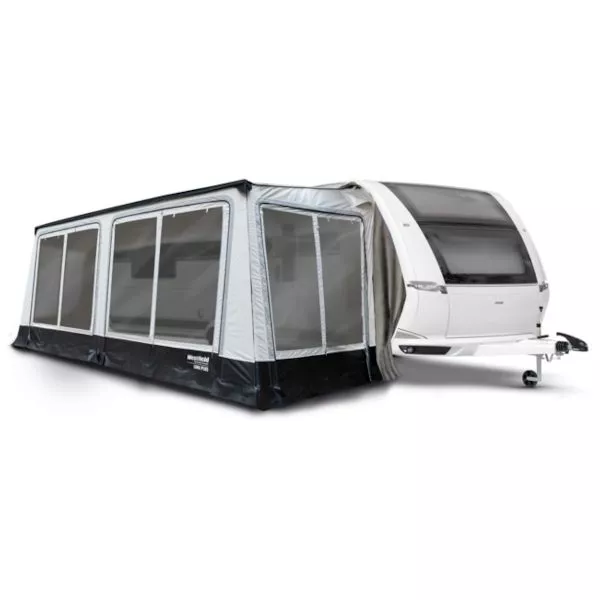 Dank der Vollausstattung benötigt das volleingezogene Luna Plus Sackmarkisenvorzelt inklusive Varioecken für den Aufbau keine weiteren Zubehörteile. Die Vario-Ecken garantieren eine perfekte Abdichtung an den Seiten des Caravans, sodass Wind und Wetter zuverlässig draussen bleiben. Ausserdem sorgt der spezielle Dachschnitt für eine besonders guter Passform, wodurch sich dieses Markisenvorzelt an fast jedem Wohnwagentypen anbauen lässt. Alles in allem ist das Luna Plus von Westfield die perfekte Wahl für reiselustige Caravanbesitzer. Der Aufbau ist in wenigen Minuten erledigt und das volleingezogene Vorzelt ist sofort einsatzbereit.