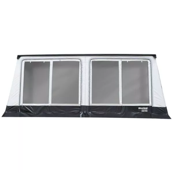 Das Westfield Luna Plus Markisenzelt in Grösse 10 besteht aus einer volleingezogene Sackmarkise, die mit dem enthaltenen Front- und Seitenwänden einfach zu einem Ganzzelt ausgebaut werden kann. Einmal in die Kederleiste eingezogen, verbleibt die Sackmarkise am Fahrzeug. Dadurch nimmt das praktische Luna Plus besonders wenig Stauraum im Wohnwagen in Anspruch und lässt sich künftig besonders schnell aufbauen.